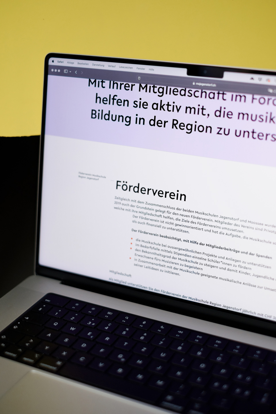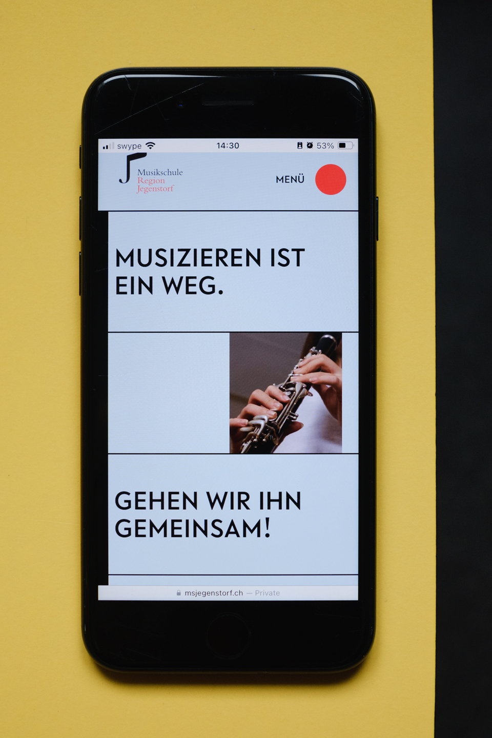 Notenlinien dienten als Inspiration & sind als Gestaltungselement in den Header aufzufinden. Schrift und Farben sind gezielt ausgewählt und sprechen durch den lieblichen Charakter v.a. Schulkinder an.